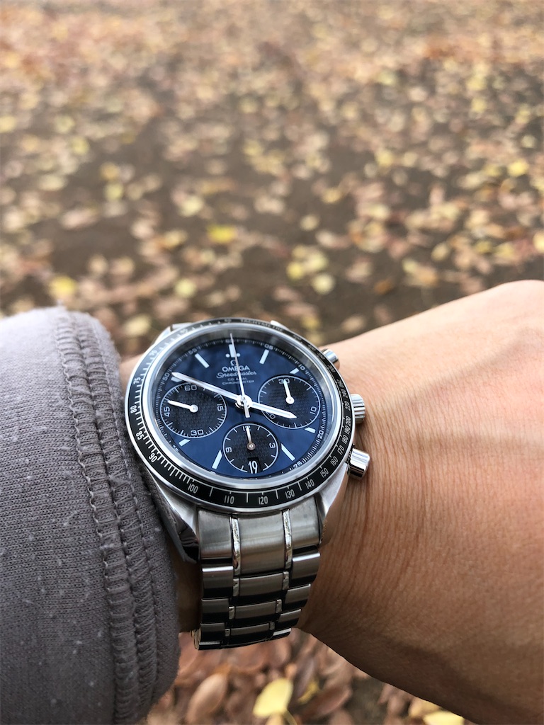 私のプライベートでのお気に入りの腕時計はスピードマスターレーシング。
